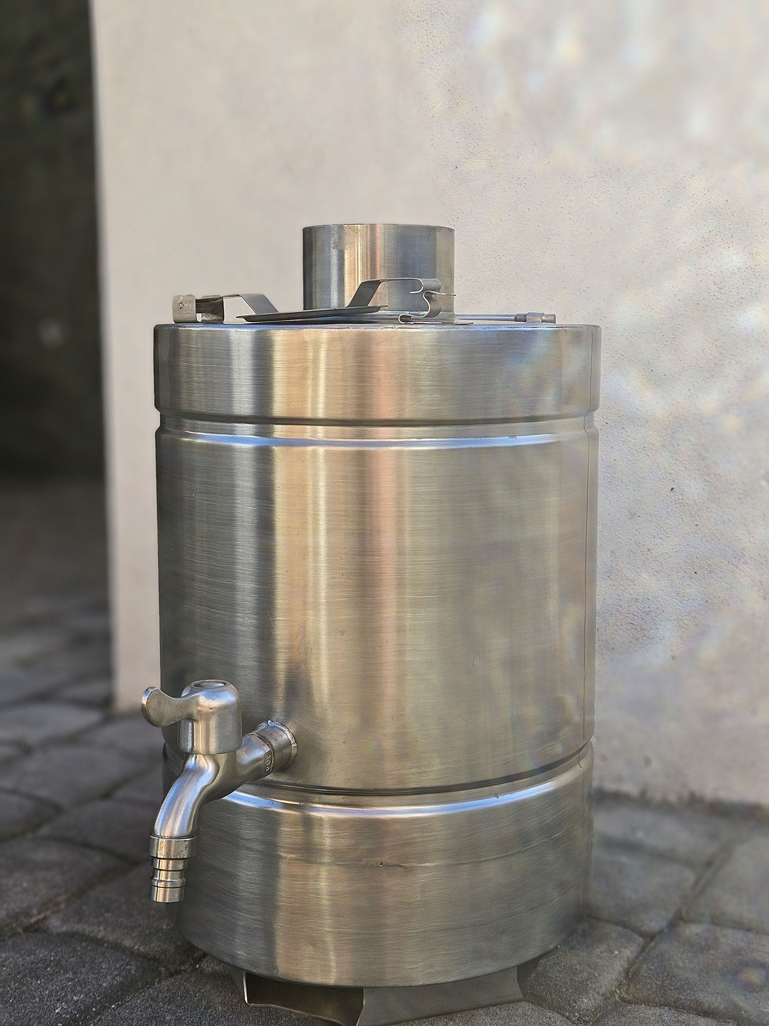 - Katilas pagamintas pagal Europos standartus, iš aukštos kokybės 1,5mm storio nerūdijančio plieno, AISI 304, pasižymi dideliu atsparumu korozijai, kai yra veikiamas vandens ir aukštos temperatūros.