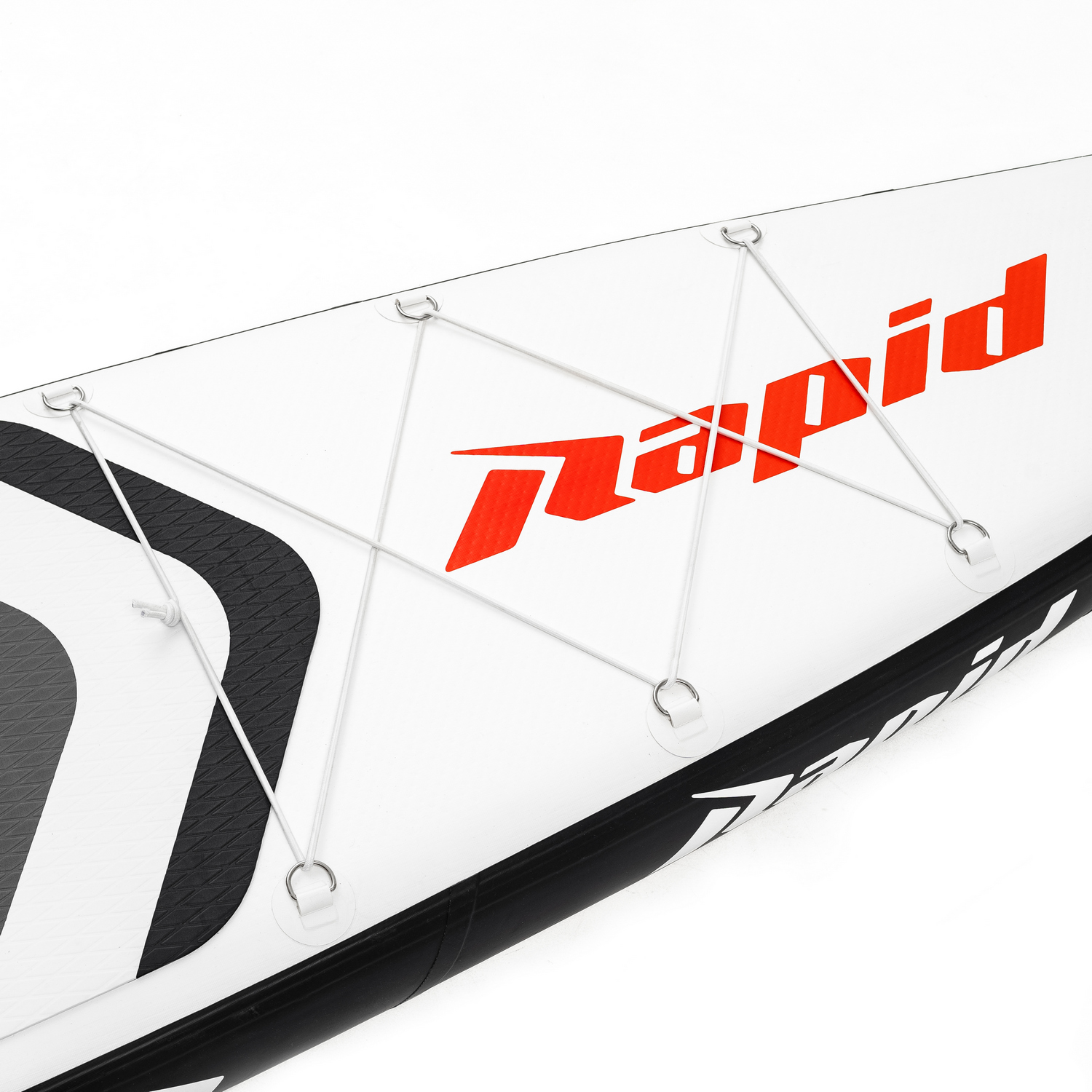Эта надувная доска имеет полностью сварной корпус (сварные швы) для повышения прочности и долговечности. Дополнительный гидродинамический элемент в нижней части (выход потока на задней кромке) улучшает характеристики скольжения, обеспечивая стабильность и плавность хода.
